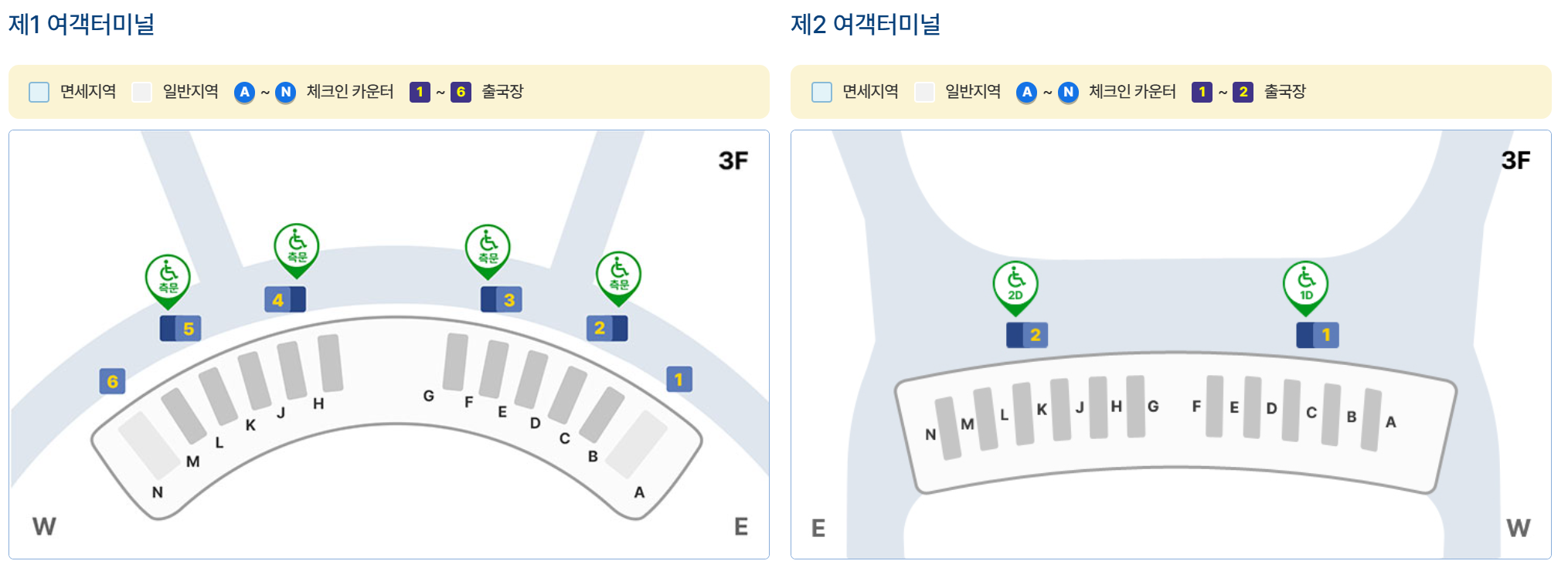 - 2~5번 출국장 측문에서 각 출국장 운영시간 동안 이용 가능